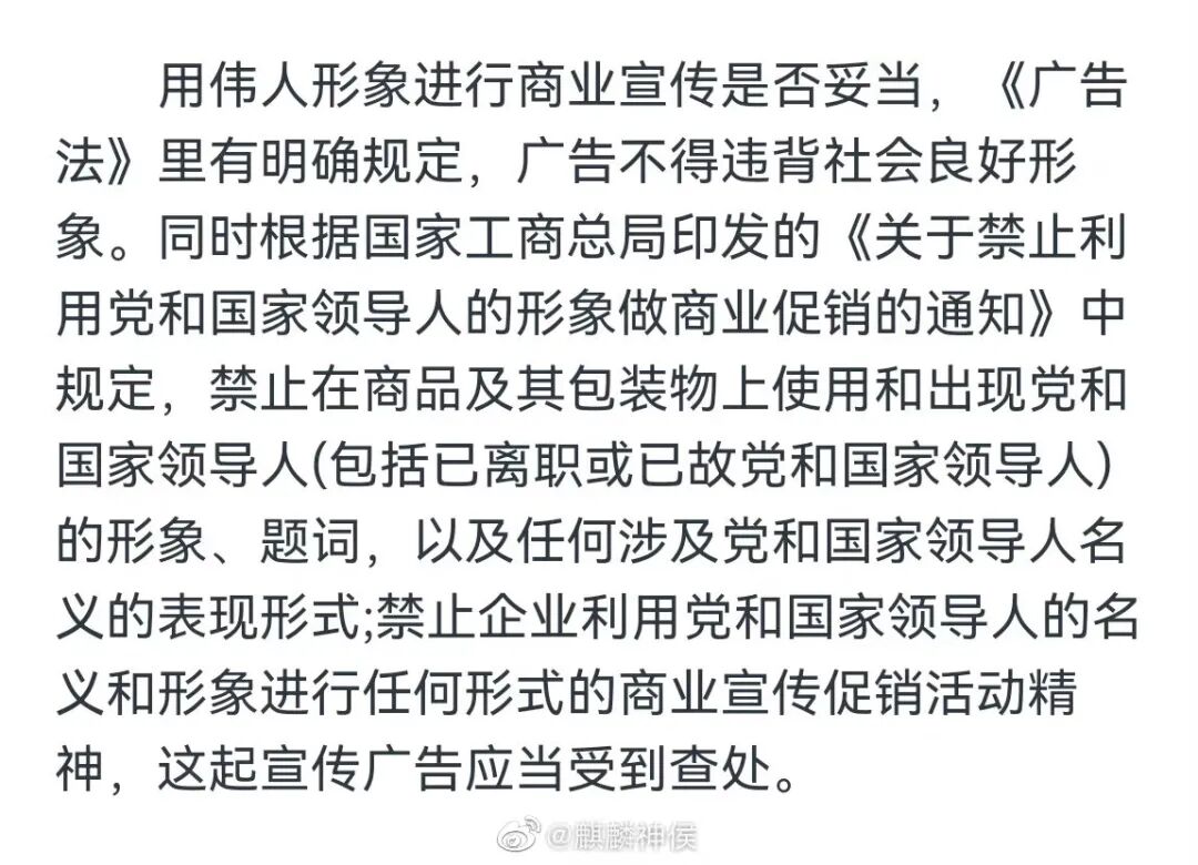 距离双十一期间三只松鼠被投诉坚果发霉刚过去一个月,三只松鼠再次摊上大事——不仅一组复古海报被扒出N个槽点,还被指涉嫌辱华。这张海报,桌子上摆的搪瓷杯和茶碗,印有毛主席的头像。而《广告法》有明确规定,品牌在进行商业宣传时,是不能用伟人头像的。更何况海报引发网友讨论当天,正好是毛主席诞辰,舆论的风浪可想而知。在另一张海报里,宣传口号“撸粉大法好,撸粉大法妙”,则套用了邪教的宣传口号。“XX大法好”这个句式,虽然很多人在日常生活中也会用来玩梗,但是用在商品宣传中,实在不妥。