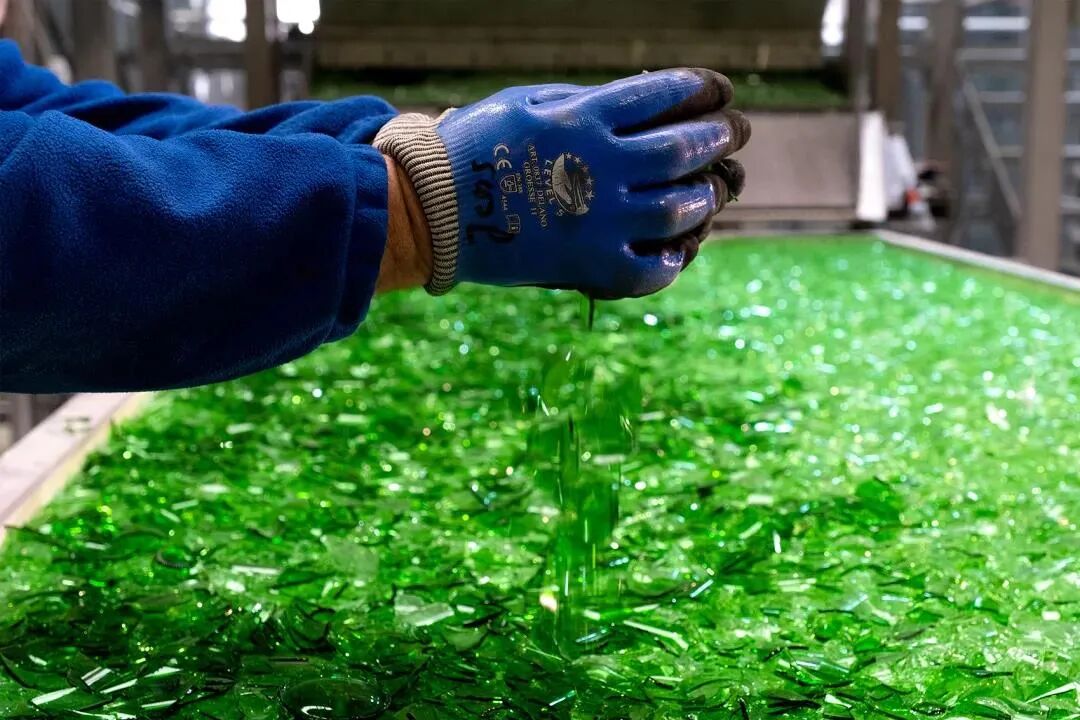 将透明色与绿色玻璃渣相互叠加