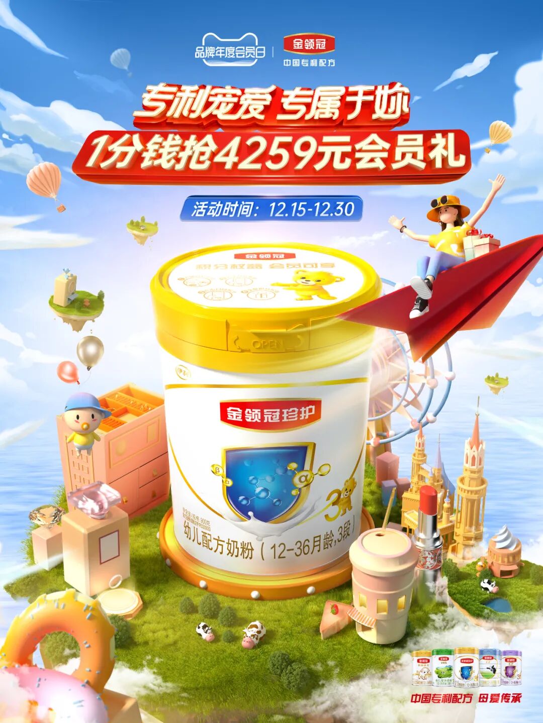 12月15日至12月30日,金领冠参与了“天猫品牌年度会员日”这一天猫旗舰店大IP,打造全网国产奶粉首个年度会员日。同时应金领冠天猫旗舰店十周年店庆,通过站内外一系列情感沟通、福利触达,打造了一场专属于宝妈会员们的狂欢。