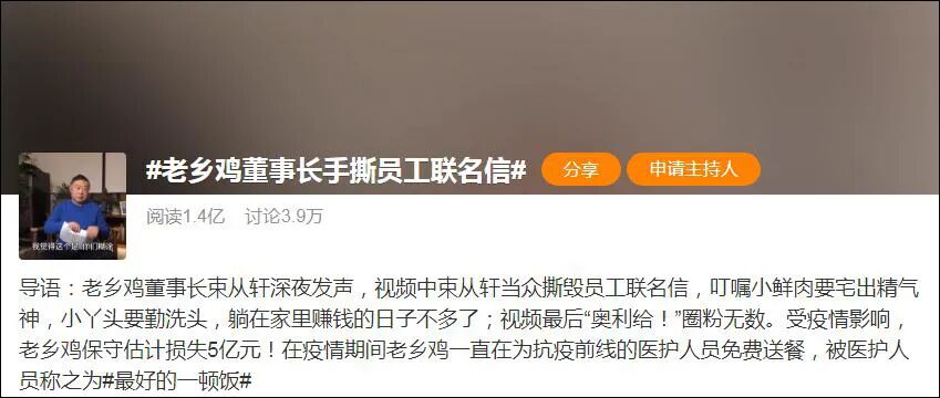 产品是品牌的基础,老乡鸡之所以能发展壮大,首要就是因为产品力。老乡鸡的前身是养鸡场,那么自然是用「自产自销」的供应链模式,这就在源头上保证了鸡肉的高质量,为上好的菜品打下坚实的基础。在菜品设计方面,老乡鸡也逐渐形成了自己的优势,做到菜品浓缩。以「肥西老母鸡汤」为主打产品,辅以其他菜肴,这样单一品类易于形成顾客认知,也便于高度标准化。「手撕员工联名信」是老乡鸡出圈的开始,束从轩因此也成为一名网红董事长。此后老乡鸡顺势而为,利用束从轩土气憨厚的形象,频频开启自身的营销秀。2020年3月,老乡鸡召开了2020战略发布会,而束从轩将地址选在了农村一处小场地,据说只花费了200元,整场视频发布会一共只有9分钟。这场史上最简陋寒酸的发布会,却再次把老乡鸡送上了热搜,让其他品牌华丽的发布会都相形见绌。老乡鸡对束从轩的「灵活使用」还不止于此,最亮眼的要数他与岳云鹏的互动。在去年老乡鸡进军北京之际,束从轩来了一段当地人喜闻乐见的报菜名,并扬言要和小岳岳比比;小岳岳则煮了一锅鸭汤,硬是指鸡为鸭让束从轩点评。两人一来一回,引发围观群众纷纷参与互动。最终在流量情绪的高点,老乡鸡才官宣岳云鹏为品牌代言人,并发布了土味怀旧的海报,让品牌声量进一步放大。官方微博是品牌营销的阵地之一,许多品牌发布的大多是常规推广内容,而老乡鸡则特立独行,玩出了属于自己的花样。老乡鸡的微博运营每天发得最多的就是「咯咯哒」,一副糊弄工作、放飞自我的形象,老乡鸡微博运营因此还被网友调侃为「最轻松的工作」,再次喜提热搜。实际上,看似无厘头的运营,体现了老乡鸡接地气、有网感的一面,也让其品牌在社交平台众多品牌中脱颖而出。老乡鸡的品牌,实则是土味与新潮的完美结合。一方面,品牌的创始人、产品都有扎根于农村的土里土气;另一方面,新奇独特的营销操作,则把这种土味真诚地展示给大众,让品牌得以广为圈粉。正是这种看似违和的融合,让老乡鸡的流量像开挂了一样,使其真正成为大众品牌。03