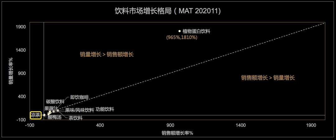 王老吉可能会感到委屈,因为它已经足够努力了。近几年,为了瞄准消费能力日益强大的年轻人群,王老吉在产品和营销上下足了功夫。2017年,王老吉推出“黑凉茶”。这款凉茶一改经典红罐包装,以黑色为主色调。王老吉将这款产品定位为“针对90后新生代的全新凉茶产品”,它在配方上采用了“加强型配方”,可以更快解决年轻人的惯性上火问题。黑凉茶只是王老吉产品创新的前奏曲。2018年底,王老吉开始在凉茶里打气。在品牌190周年庆典活动上,王老吉发布了两款新品,分别是茉莉凉茶和爆冰凉茶,其中爆冰凉茶是一款气泡型饮料,包含冰爽可乐和冰爽柠檬两种口味。王老吉母公司广药集团的总经理助理陈伟平表示,王老吉想要赋予凉茶更细分的产品、功能及消费场景,同时布局品类多元化。加气泡的确是个不错的思路。2018年3月,元气森林的气泡水产品上市,为气泡水市场的快速增长拉开了序幕——根据智研咨询的数据,2016到2018年气泡水的复合年增长率为17%,而2018到2020年,这个数字变成了27%。也就是说,王老吉很敏锐和迅速地捕捉到了“气泡”这一趋势。形成反差的是,在王老吉推出气泡凉茶的两年半后,销量连年下降的和其正才推出了气泡凉茶,试图赶上“气泡”这趟快车。如今再去王老吉的天猫和京东旗舰店寻找这几款产品,除了黑凉茶还在售卖之外,老款茉莉凉茶和爆冰凉茶已经不见踪影,取而代之的是“茉莉风味无糖凉茶”和“无糖气泡凉茶”。与其他无糖饮料一样,王老吉将“0糖0脂0卡”印在包装醒目的位置上。很显然,它瞄准的是年轻人对“无糖”的健康需求。这两款产品都是王老吉于2021年底推出的新口味,但实际上,王老吉早就开始关注“无糖”了——早在2016年6月,王老吉就推出了无糖低糖凉茶新品。要知道,2016年中国无糖茶饮料的市场规模仅为现在的三分之一,约18.2亿元。真不愧是190岁的老品牌。在看到王老吉这样的产品创新步调后,可能任何饮料企业都不得不赞叹一句:你王大爷还是你大爷。不仅仅做产品年轻化,王老吉也在拼了“老命”进行消费者沟通年轻化。2017年伊始,王老吉推出洗脑神曲《鸡年吉吉操》;2019年11月,王老吉跨界游戏,推出《和平精英》版限量礼盒;2021年1月,王老吉与快手磁力引擎实现战略合作,深度结合王老吉的“吉文化”与快手年轻多元生态,进一步深化年轻市场;2021年8月,王老吉联手快看漫画打造“王老吉夏日创作大赛”,鼓励用户以“怕上火喝王老吉”文案进行创作为王老吉组CP……类似的例子数不胜数。从年轻化的媒介形态,到品牌联名与跨界,再到媒体平台的战略合作,甚至到UGC形式的品牌互动,王老吉一个不落。但尴尬的是,“黑凉茶”“茉莉凉茶”“爆冰凉茶”这些新品没有一款真正引爆年轻人市场。不仅在年轻人喜欢的便利店渠道难寻踪迹,甚至不少已经退出历史舞台。王老吉的新品表现很让人尴尬,但是更令人尴尬的恐怕是凉茶在整个饮料市场中的地位。根据天猫新品创新中心公布的报告,在所有饮料品类中,凉茶的销量增长率和销售额增长率几乎垫底。“奋进生”没有成为“优等生”。倘若真要探寻这背后的道理,我们恐怕就不得不看一看历史。