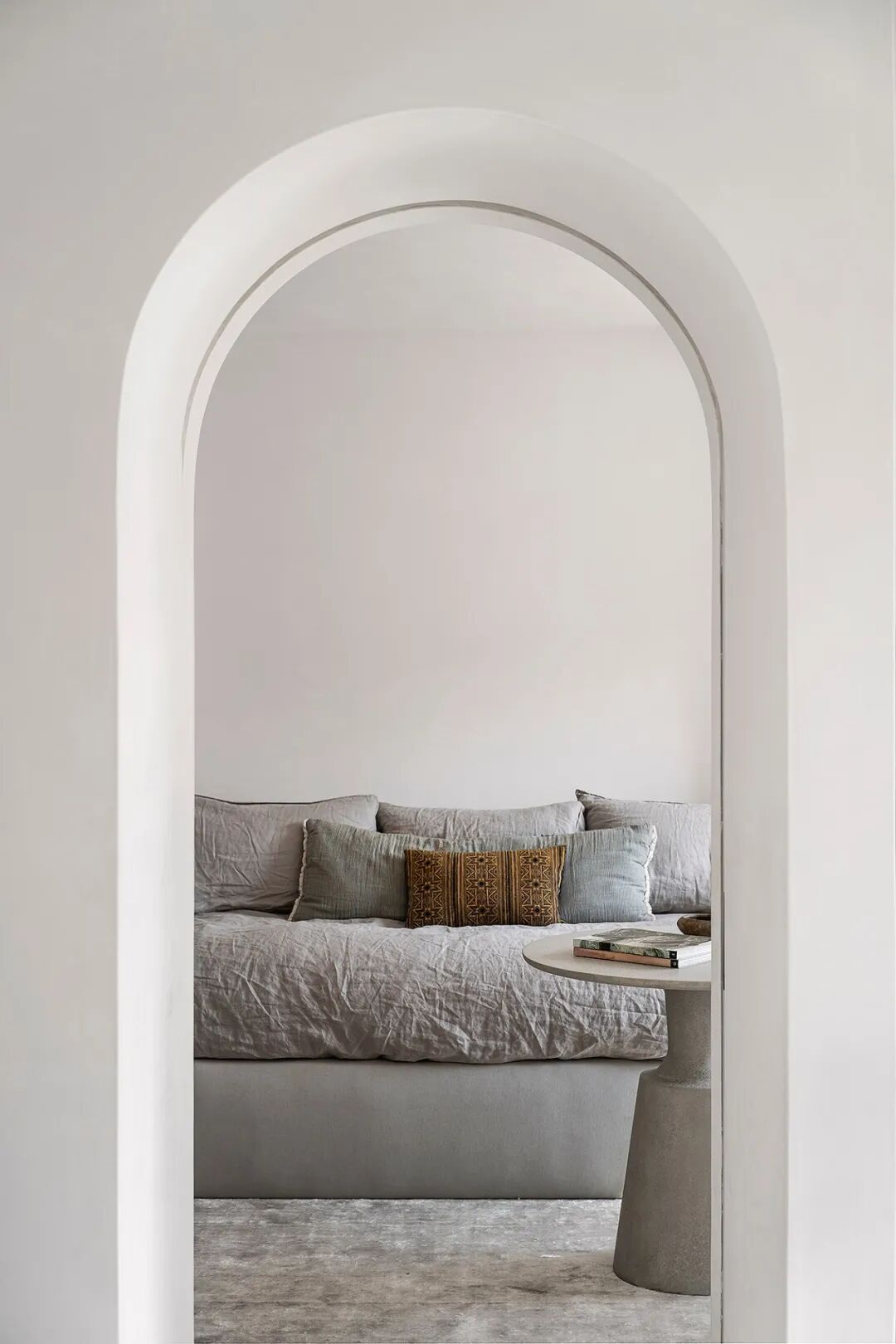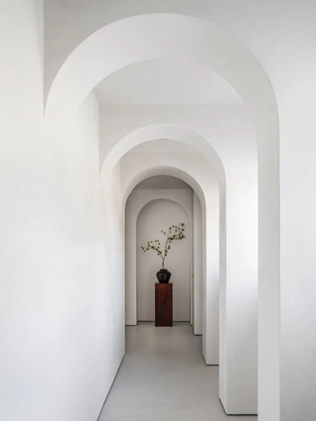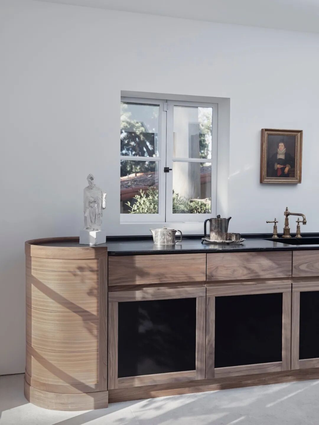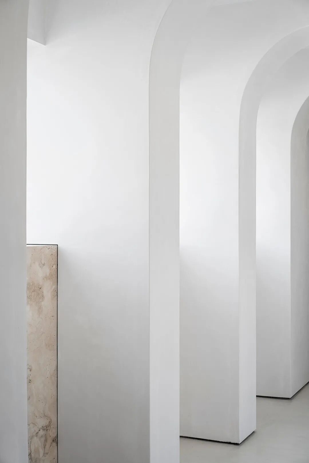 这所房子最初没有拱门,在Mandy Graham的设计下,拱门几乎穿透了整个空间。它定义了餐厅和厨房的组合空间,由一个小走廊隔开。拱门元素的应用,是Mandy Graham的项目中最经典的特征之一,它常常被视为古典甚至哥特式建筑的元素,然而对于Mandy Graham来说,在建筑中使用拱门元素是向装饰艺术的致敬,是在简洁的线条和触感的细节中体现了一种潜在的精致感。她 将曾经漫长而平静的走廊重新想象成一系列宏伟的拱门,让光影的柔和相互作用成为空间中的艺术。