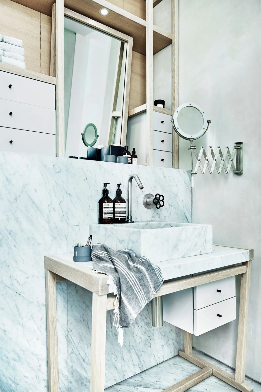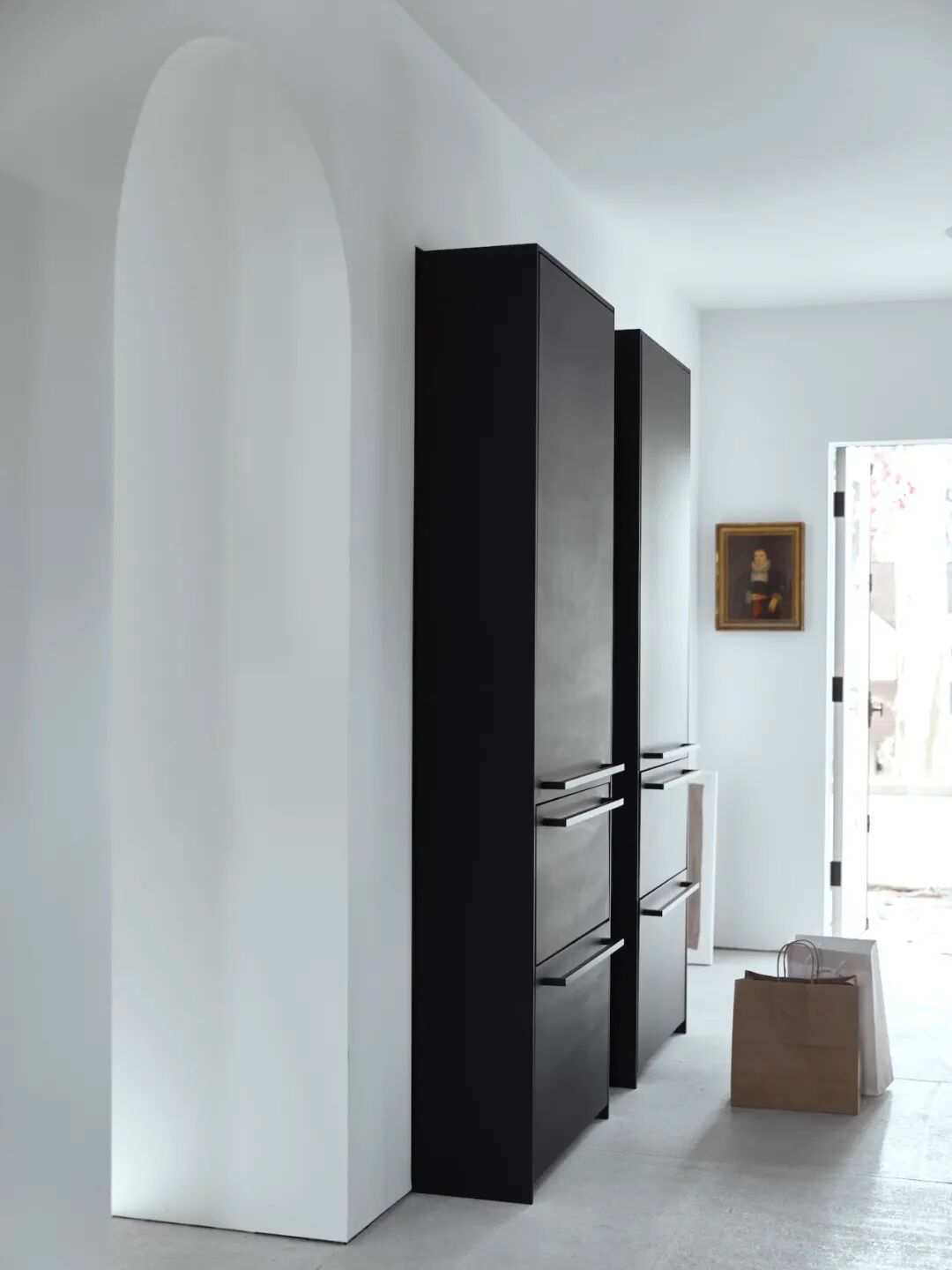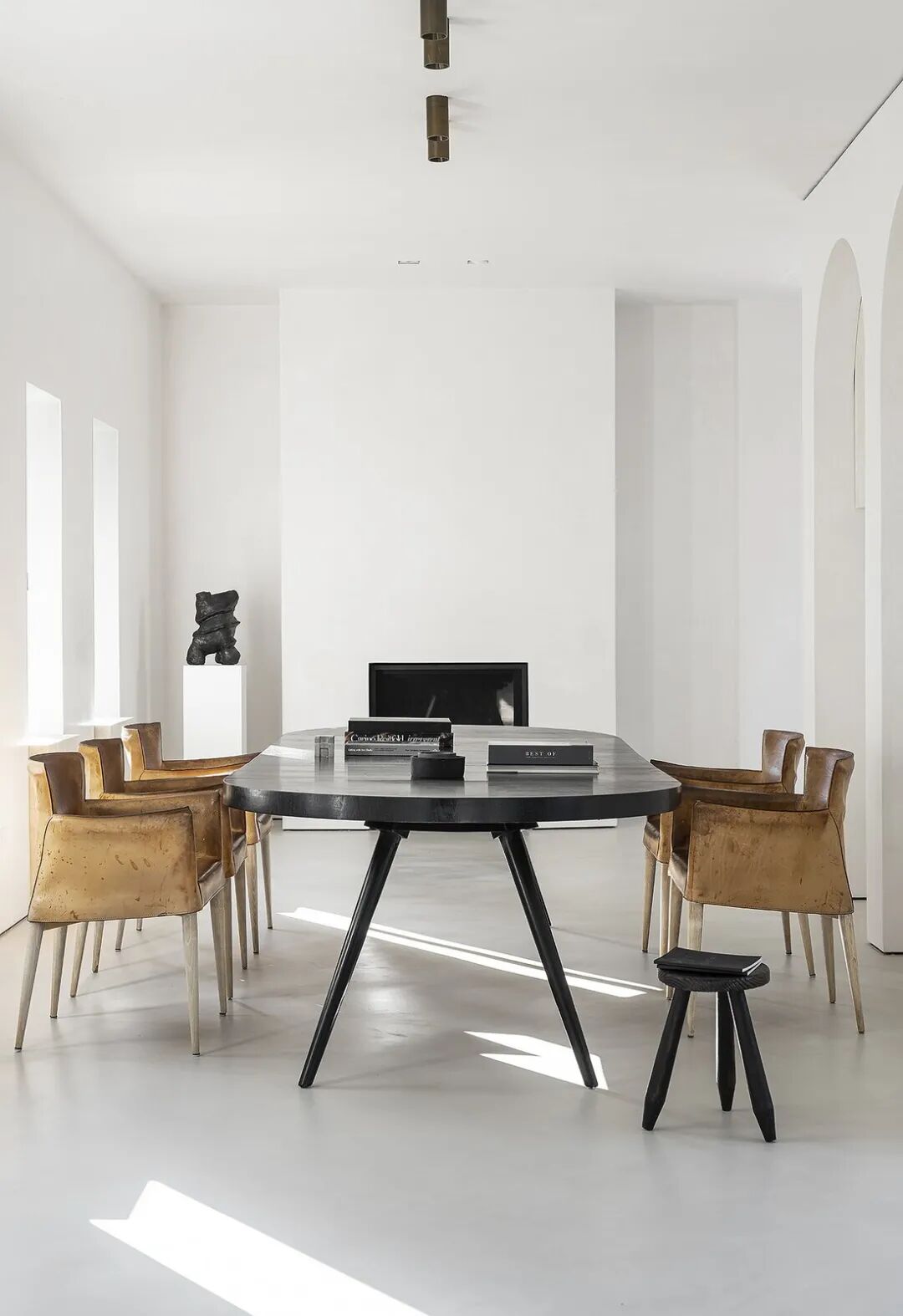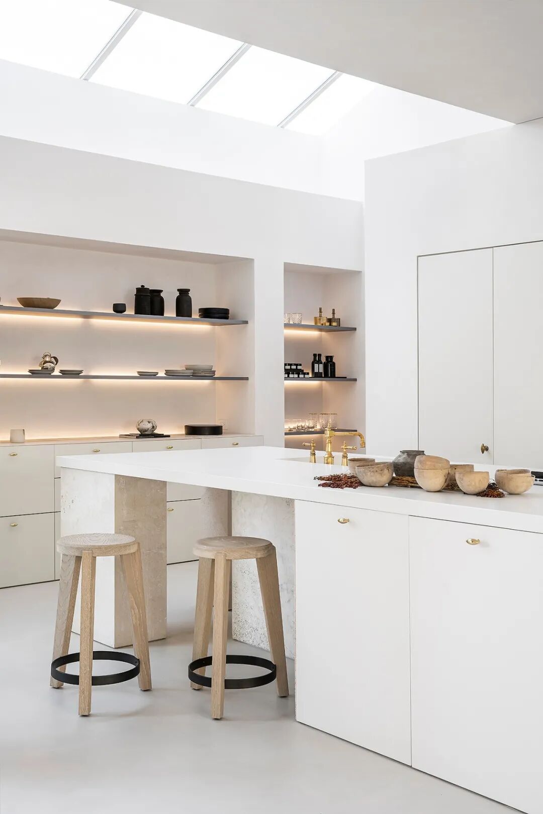 这所房子最初没有拱门,在Mandy Graham的设计下,拱门几乎穿透了整个空间。它定义了餐厅和厨房的组合空间,由一个小走廊隔开。拱门元素的应用,是Mandy Graham的项目中最经典的特征之一,它常常被视为古典甚至哥特式建筑的元素,然而对于Mandy Graham来说,在建筑中使用拱门元素是向装饰艺术的致敬,是在简洁的线条和触感的细节中体现了一种潜在的精致感。她 将曾经漫长而平静的走廊重新想象成一系列宏伟的拱门,让光影的柔和相互作用成为空间中的艺术。