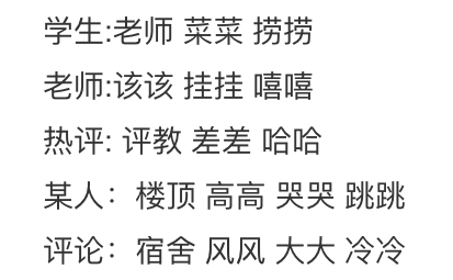 学生:老师 菜菜 捞捞 呜呜