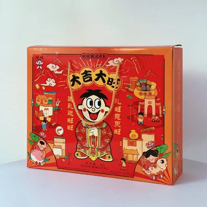 如果你觉得旺旺除了这次的联名礼盒是比较特别,其它的礼盒都是像这种卡通又喜庆的,那就大错特错了!