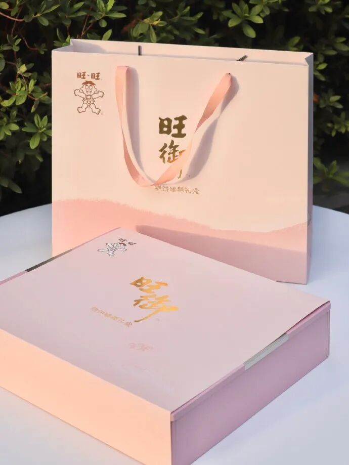 这次的合作把原来一个那么普通的包装,设计成了如此有高级感的礼盒,整成一个我们吃不起的样子。再看回这个经典的雪饼礼袋对比 。