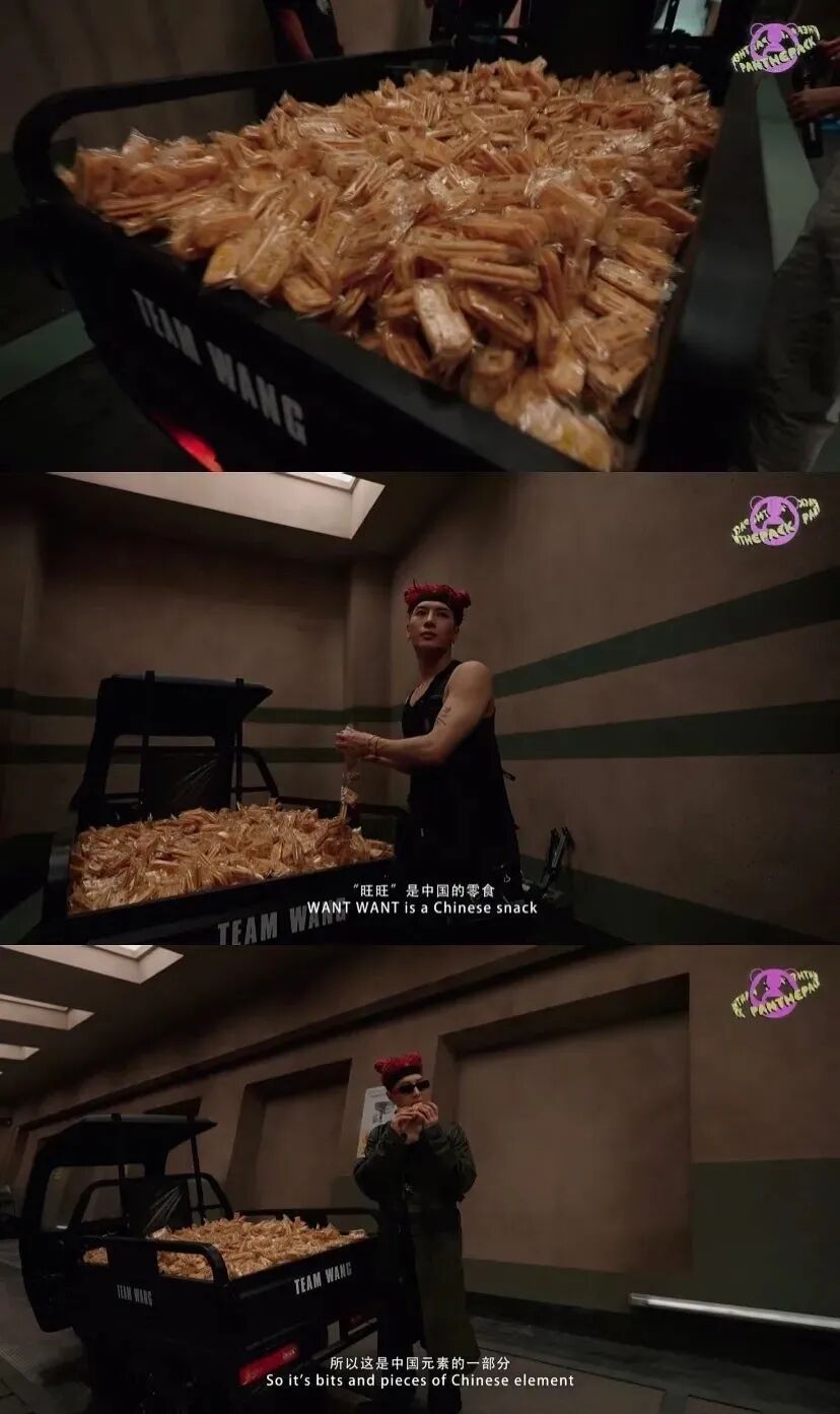 而王嘉尔就觉得旺旺是中国人的回忆,也是中国元素的一部分。所以也把一卡车的旺旺仙贝搬到了MV里,可以看出他对旺旺有多喜欢了。