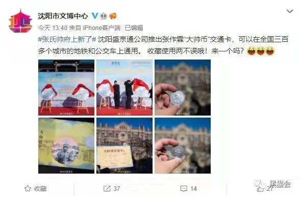 网友指出推出张作霖大帅币交通卡是否不妥,