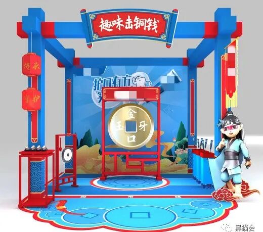 击铜钱寓意招财进宝,将铜钱,瞄准铜铃,击中即可获得精美礼物一份。