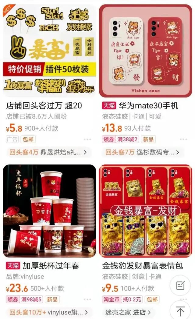这只憨憨的豹子可不止是局限于微博、微信的一亩三分地,快手、抖音、B站都是清一色的金钱豹头像。真是三十年河东,三十年河西。昔日被孙悟空降服的豹子精,在电视剧播出三十多年后,成为人见人爱的招财豹,孙悟空彻底emo了!看着全网的金钱豹,能打败魔法的只有魔法,能打败妖精的只有西游记里对的各路神仙。在《西游记》里,豹子精垂涎樵夫妻子的美貌,将夫妻两人绑架,逼樵嫂跟他成亲,却难博美人心。不过,剧里的金钱豹可有点惨,既没得到美人,还丢了性命。最终的结局是在猪八戒的耙子下惨死,成为唯一一个真正被猪八戒杀死的妖王。就是这样一个听起来相当悲剧的角色,却摇身一变,成为了年轻人梦想发财的财富领袖。从转发锦鲤,到转发信小呆、杨超越,再到换金钱豹头像,当代年轻人深信“暴富玄学”,拿头像当许愿池”也见怪不怪。不信你看,现在换上金钱豹头像的,和当年转发锦鲤的,是不是同一批人?在淘宝搜索“暴富”,除了有当下最火的金钱豹表情包,还有暴富手机壳,暴富钥匙扣、暴富挂饰、配上各种和暴富有关的图案,将暴富“玄学”体现的淋漓尽致。当你还在用金钱豹当头像时,有的人已经把同款发型安排上了。