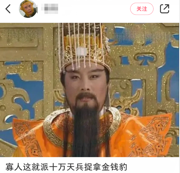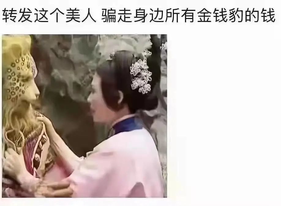 一夜之间,朋友圈都齐刷刷换成了金钱豹头像,一瞬间还以为捅了豹子窝。这不是来自《西游记》里的豹子精吗,他自称“南山大王”,由于武力值太低,光速就领了盒饭,怎么莫名其妙火了?原来和前阵子的火起来的“孤寡青蛙”和“七夕布谷鸟”表情包一样,都是因为谐音梗。他被选中的另一个原因,当然那一身金色铜钱的限定皮肤,金灿灿的惹人爱。起初是有网友在社交平台上发帖称换上金钱豹,就会有金钱。接着,这个魔性的头像就火起来了,毕竟,谁能拒绝招财金钱豹呢。为了避免微信聊天发错对象,万能的网友们开始花式P图打造差异化,蝴蝶结、腮红、墨镜、财神帽,双马尾都给安排上。没想到是反派的金钱豹,经过现代美颜技术的修饰,竟然有些眉目清秀,又带着一丝邪魅。墨镜、大金链子、元宝三件套,土到极致就是潮,妥妥的暴发户气质。在出其不意和玩梗整活这方面,你永远可以相信我们油菜花的网友。短短几天,金钱豹已经实现了从传统山大王,到女装大佬,再到财神爷等质的飞跃。有了五花八门的豹子,于是群里大家都纷纷换上金钱豹头像玩起了连连看。
