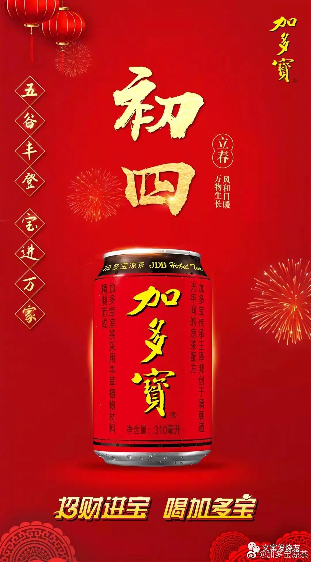 正月初四,恰逢立春,一年四季由此开启。风和日暖春渐长,五谷丰登庆新年。在这二十四节气之首的立春时节,我们走亲访友,共饮加多宝,祝愿新的一年春生万物,福韵乾坤,四时平安,招财进宝。