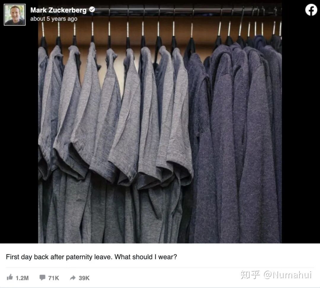 马克·扎克伯格曾晒出自己的衣橱,没有花样繁多的衣服,都是一摸一样的灰色T恤和帽衫,显然以他的身份已经没有必要再从穿衣上来显示自己的独特性了。