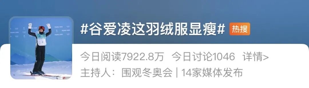 不说朋友圈里,各种海报&视频&广告疯传,就说微博一屏热搜50个,谷爱凌词条独占一半,就可知是顶流无疑。