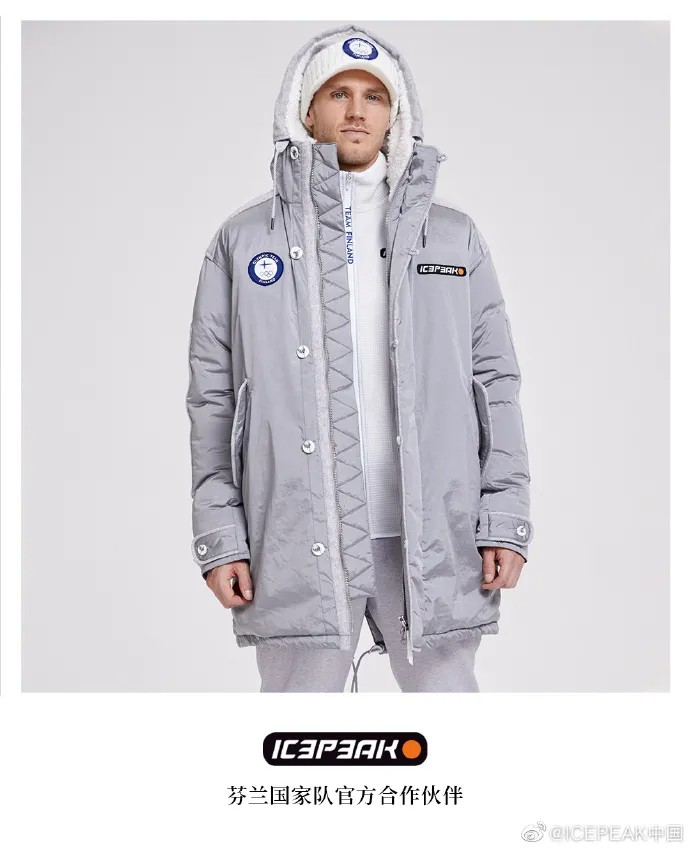 灰调的高级感与冰雪的白交相辉映,像极了一群行走在冰面上的憨憨企鹅。作为一个运动时尚品牌,芬兰ICEPEAK对于创意的拿捏相当贴近年轻人。美国队的羽绒服,相当契合奥运这一运动场景和主题,胸前的国家标识也是简洁清晰,美式运动风铺面而来。