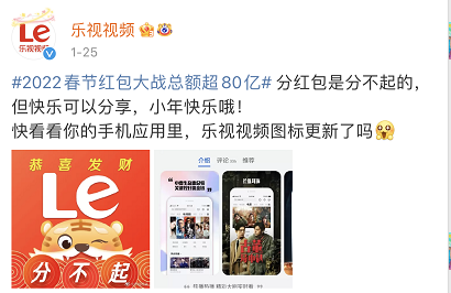 好家伙,互联网资本大佬们内卷起来,一个比一个财大气粗!但在一片红包喜庆之下,乐视的表现显得格格不入了,居然在LOGO图标上亮出文案:分不起。