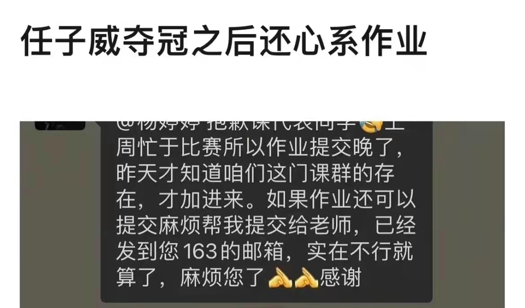 任子威夺冠后还惦记着没交的作业,