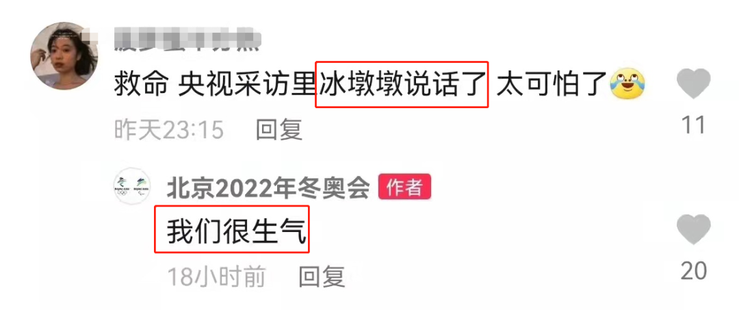 我想象中的冰墩墩声音,不是咿咿呀呀,那也是奶声奶气的呀。跟咱们可爱的冰墩墩形象,可真的太不搭了,看得我拳头都硬了。