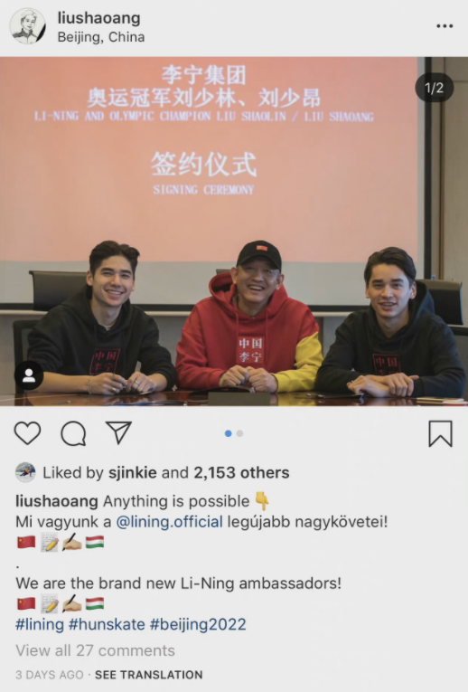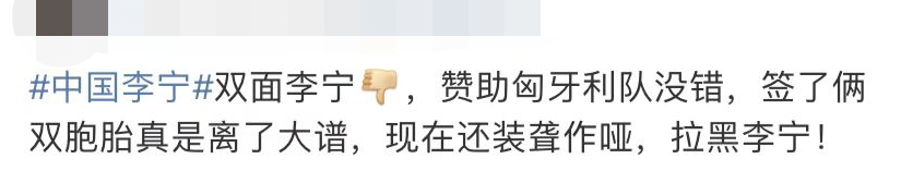 李宁不是在双面人事件发酵之后签的刘少林刘少昂两兄弟,而是早在19年就签约了。人市场部的眼睛也不是尺,毕竟大家在冬奥会刚开始的时候,还一口一个匈牙利好兄弟,咱不能说靠一张扒祖坟式截图就以偏概全,给人一顿怼,这样的网络舆论环境是有点离谱的。签了刘氏两兄弟广告,原意是等着冬奥会热度火一把,因为这俩兄弟之前在咱们这的营销真的挺成功的。宣传俩兄弟都喜欢中国,是东北小伙,妈妈在他们来中国之前还把两国国旗缝到了一起,咱就是说这营销谁看了谁不迷糊,之前大家真的都把他们当自己人,一整个人见人爱,花见花开的程度。国旗都说缝一起了,李宁赞助一下,那不是锦上添花的事儿,结果没想到两兄弟自己把自己在中国的名声搞臭了,好感度和市场直线下降,硬生生把自己的路给堵死了。。。但是,为国争光这四个字,请铭记于心,这种有中国血统代表外国队的,玩不好就容易脱线。。而且,你的签约对象在国内市场都翻车了,你还是安静如鸡好一点。