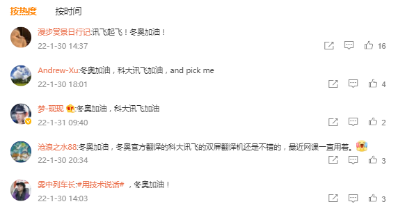 依托TVC本身所具有的价值感,在评论区内,就引发了不少网友的应援热潮,纷纷为冬奥助力,更有用户推荐科大讯飞的双屏翻译机,成为网课“小帮手”,进一步激发UGC产出。