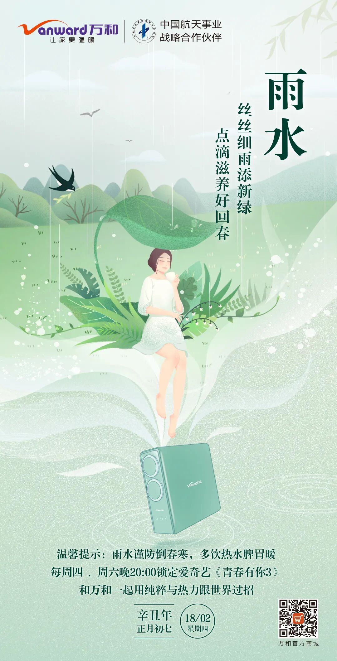 今日#雨水# 。春来水降,萌生青青草色,滋养世间温情,我们温酒举杯,静听雨润华夏,将生机与希望低吟浅唱。