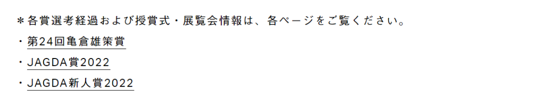 以上为10项获奖作品,而本次JAGDA新人奖颁与了佐佐木拓、竹田美織、前原翔一三位年轻设计师,相关作品可至:https://www.jagda.or.jp/awards/kamekura/ 相关官网进行查看。