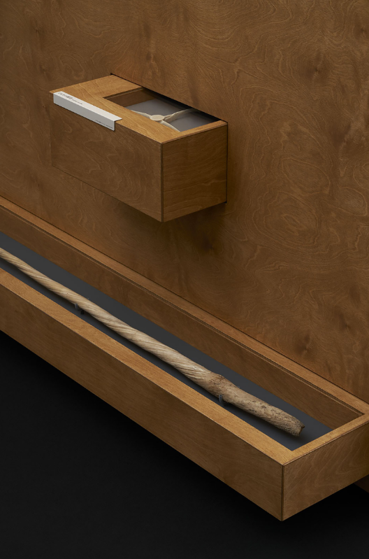 与主展品相关联的周边环境的元素,通过抽屉的方式进行“隐藏”,在拉开抽屉的时候,让我们了解到物种与环境的多样,通过这种层次的遮蔽与递进,增强了观展的趣味性与互动性。