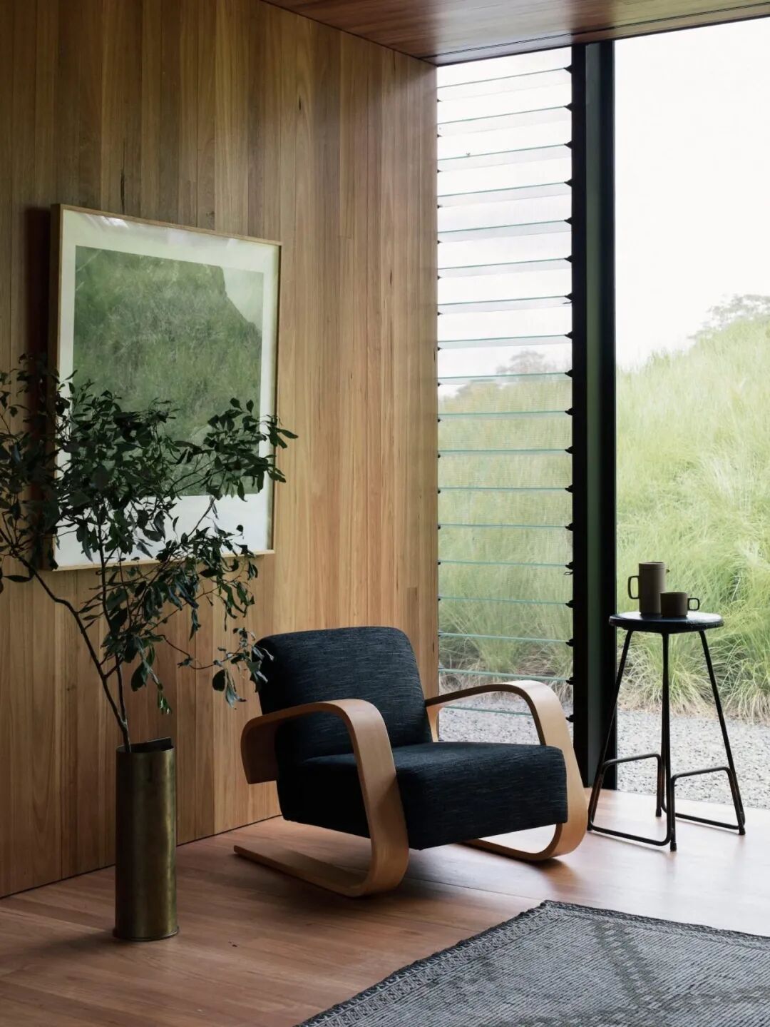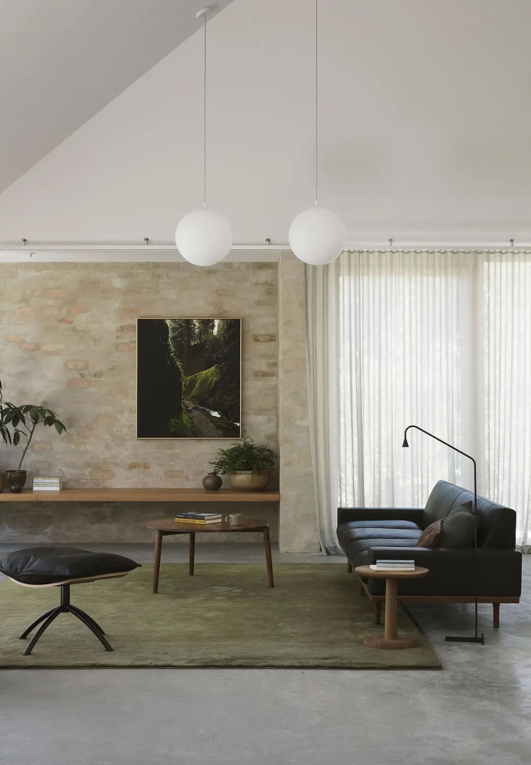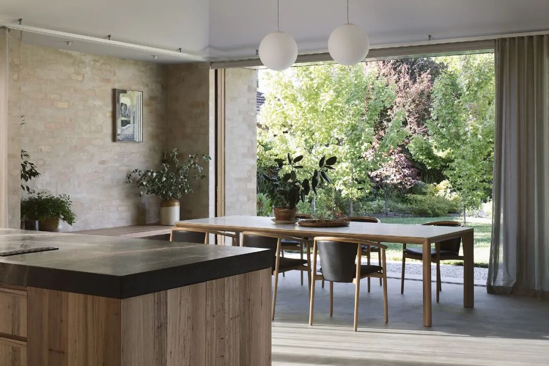 2016年,室内设计师Kim Bridgland和Aaron Roberts在墨尔本创立了工作室Edition Office,在五年多的时间里凭借着众多优秀的作品与声誉屡获殊荣。Edition Office乐于创建一系列的人物与建筑之间的关系和故事,而这所有的这些实践都是对材质、空间和文化实践进行更深入的研究与尝试的结果。Edition Office致力于不断尝试新的技术和材料,以重新构建或者新构建设计的实践与理念。“设计除了满足人们的正常需求外,也要让生活与自然得到完美的融合。”巨如坚石,雅如雕塑。Edition Office在拜伦(Byron )的腹地中设计一个“作为避难所”的家,地平线上吐露全景,这座住宅便从住宅中露出身形。Federal House就隐蔽在地形的鲜明对比之中,成为广阔景观中的一道阴影。不同于古典乡村建筑的传统形式,这座引人注目的住宅拥有锐利而黑暗的线条,而这些线条都来自于上色了的厚木板条,如锐利的浮雕,与乡村景观格格不入。然而,不仅仅是出于外观的考虑,Federal House的外观也考虑到了可持续与功能性的设计理念。Edition Office尊重环境,所以这座住宅很明显的处于一个“附属”的地位。Edition Office 设计了一个合适的平面图——开放式生活、厨房和餐厅与环境相连,以景观中的建筑为中心,同时包容了暴雨和亚热带炎热等恶劣天气。建筑师使用木材、混凝土和瓷砖构筑室内,这些材料提供触感、有机和长久使用。有机色调的黑对接木材为起居空间和三间卧室提供了更加轻盈的触感。内外的调色板显示出差异,然而却共处在一个系统里:受青绿环境的启发,Edition Office 在家具选择中选择了有机材料,如Tiki 沙发、 织布机地毯 和Oeuffice 的 Ionik 边桌构成开放式生活中的特点。厨房延续了黑色主题,所有的功能性电器都使用统一的质感,如集成燃气灶具和经典烤箱,共同展现了精致的烟火气息。地势优势让室内的视野更加开阔,开放式的设计既是考虑到屋主人的居住需要,也成全了青山碧水的美景。在拜伦腹地的层峦山丘上,这座住宅既包容于这个地方,同时它本身也需要去包容和理解周围的环境。浴室中的黑色花岗岩瓷砖与绿色景观并列,Agape Normal 浴缸成为欣赏室外环境的完美场所。Federal House远不止是经典的静修所,它还是工作室对住宅建筑的一次经典尝试,对乡村景观有着内在的理解和尊重。“极简是通过最简单的设计,融入纯熟的设计理念,连接关于生活的点滴,打造纯粹且舒适的设计感之家。”位于维多利亚州马其顿山脉(Mt Macedon)地区的Kyneton House体现了新旧元素的交融,包含了一种重新塑造周围环境的质朴美学品质。在这个镇上,许多建筑都可以追溯到 1850 年,这种古老的历史感赋予了这座建筑独特而深沉的气息。Kyneton House 重现了人与自然的设计对话,给居住者一种“随着季节变化而变化”的感觉。环绕建筑的花园,其中一部分的树木迁自客户的乡村住宅,遥远而广阔,这是对季节变化的永恒颂歌。Edition Office 的灵感来自时间和建筑本身的概念。没有空调或机械进行空气的冷却;相反,这所房子依靠周围的环境来调整它的内部状态,与自然展现亲密无间的关系。Edition Office结合了再生砖墙和纹理砖墙、浅色低碳混凝土地板和镀锌钢屋顶,让外面的自然世界在充满生机的日光下通过其房间与外部环境产生链接。高挑的天花板营造出无限的空间感,中央天窗位于在三角形开口的顶部,自然光通过该天窗流入中心,照亮整个空间的氛围。白色的调色板更加轻巧,与光线进行对应。在材料的选择上,绿植、木材与岩砖成为装饰室内的主要内容,简约自然的布局和修饰,斑驳而富有故事情节。每个区域都配有框架窗户,可以像舞台上的幕布一样展示室内的环境。肌理墙被延伸到了厨房,同时将干净的感觉也带到了这个区域。阔大的落地窗带来清秀的花园环境,在丛林灌木中感受到春夏秋冬的变换,这种对比可以让外部滋养室内的调色板。浴室则调低了亮度,以灰色砖面平铺,线条直接干净。进入浴室的第一瞬间,情绪仿佛被剔除,所有的组合好像都在提醒着克制与隐忍。