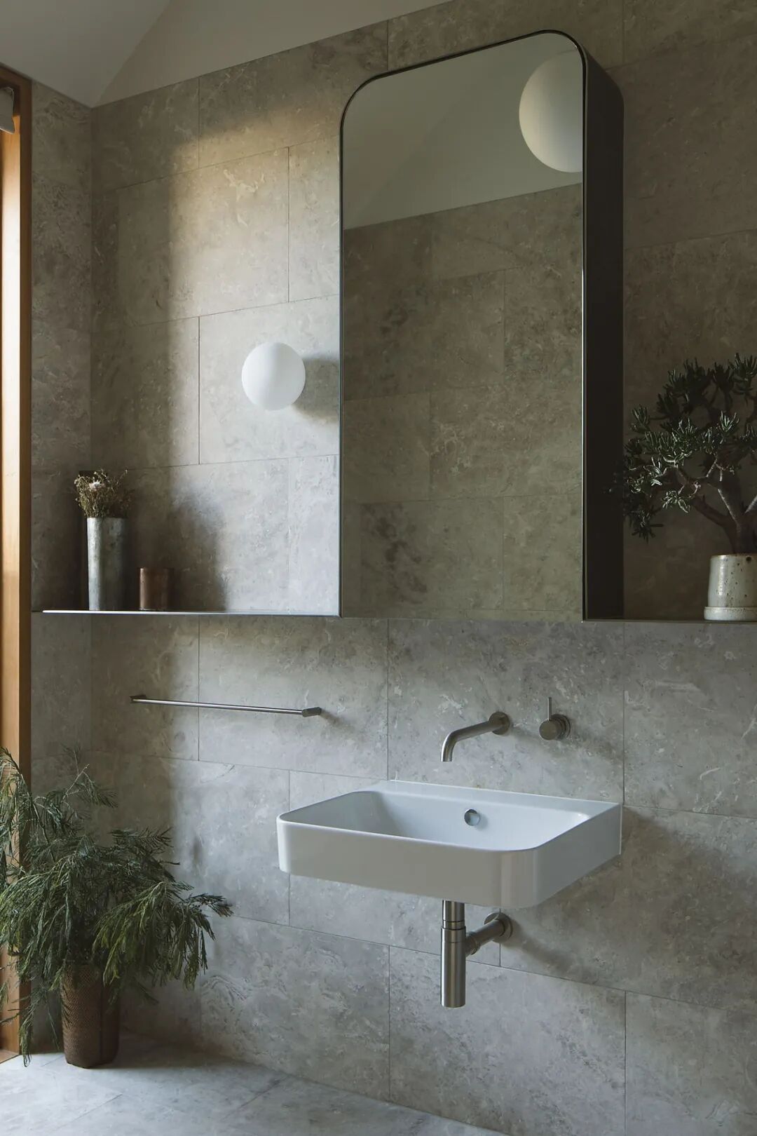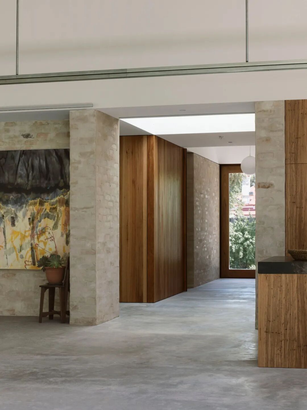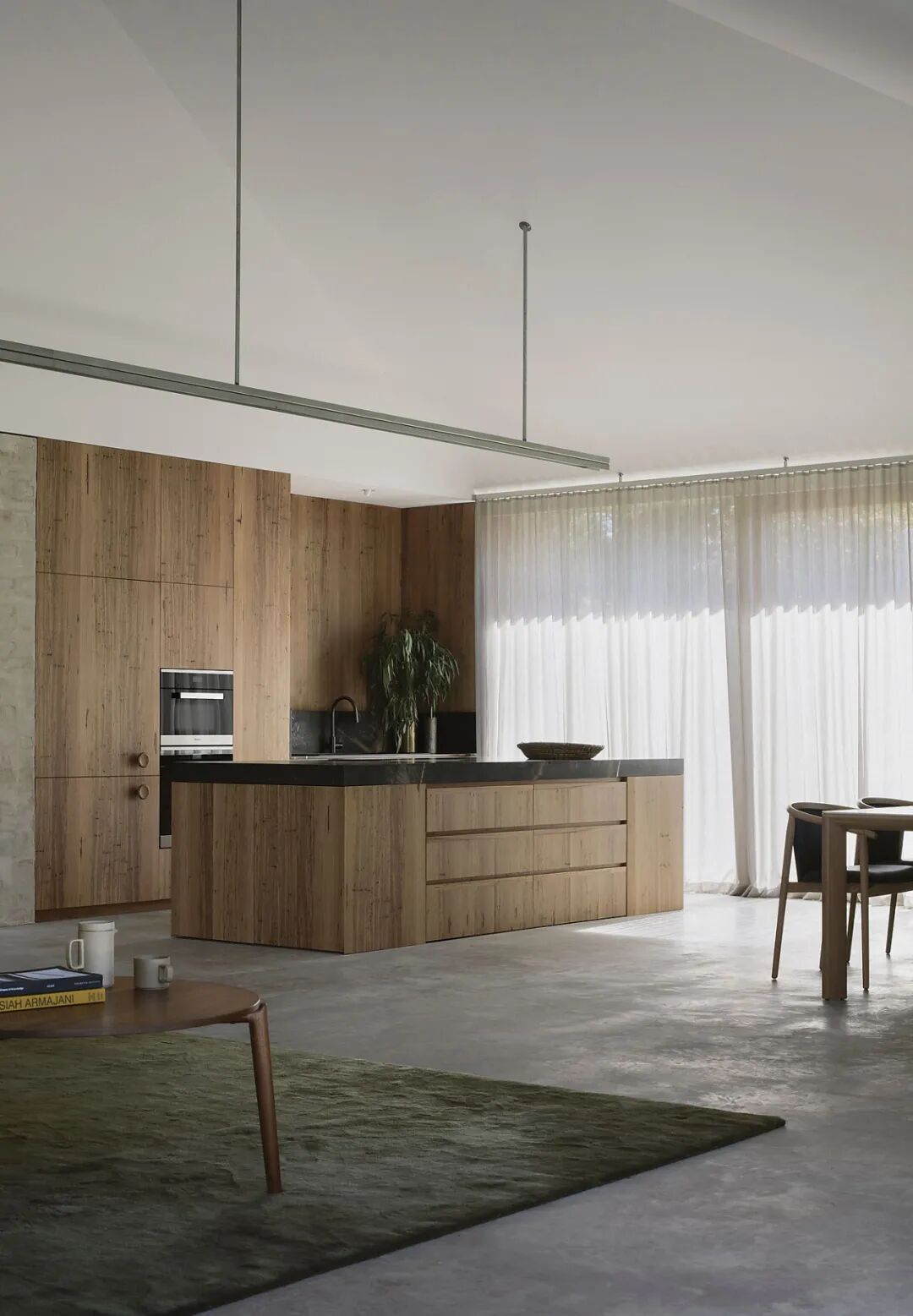 2016年,室内设计师Kim Bridgland和Aaron Roberts在墨尔本创立了工作室Edition Office,在五年多的时间里凭借着众多优秀的作品与声誉屡获殊荣。Edition Office乐于创建一系列的人物与建筑之间的关系和故事,而这所有的这些实践都是对材质、空间和文化实践进行更深入的研究与尝试的结果。Edition Office致力于不断尝试新的技术和材料,以重新构建或者新构建设计的实践与理念。“设计除了满足人们的正常需求外,也要让生活与自然得到完美的融合。”巨如坚石,雅如雕塑。Edition Office在拜伦(Byron )的腹地中设计一个“作为避难所”的家,地平线上吐露全景,这座住宅便从住宅中露出身形。Federal House就隐蔽在地形的鲜明对比之中,成为广阔景观中的一道阴影。不同于古典乡村建筑的传统形式,这座引人注目的住宅拥有锐利而黑暗的线条,而这些线条都来自于上色了的厚木板条,如锐利的浮雕,与乡村景观格格不入。然而,不仅仅是出于外观的考虑,Federal House的外观也考虑到了可持续与功能性的设计理念。Edition Office尊重环境,所以这座住宅很明显的处于一个“附属”的地位。Edition Office 设计了一个合适的平面图——开放式生活、厨房和餐厅与环境相连,以景观中的建筑为中心,同时包容了暴雨和亚热带炎热等恶劣天气。建筑师使用木材、混凝土和瓷砖构筑室内,这些材料提供触感、有机和长久使用。有机色调的黑对接木材为起居空间和三间卧室提供了更加轻盈的触感。内外的调色板显示出差异,然而却共处在一个系统里:受青绿环境的启发,Edition Office 在家具选择中选择了有机材料,如Tiki 沙发、 织布机地毯 和Oeuffice 的 Ionik 边桌构成开放式生活中的特点。厨房延续了黑色主题,所有的功能性电器都使用统一的质感,如集成燃气灶具和经典烤箱,共同展现了精致的烟火气息。地势优势让室内的视野更加开阔,开放式的设计既是考虑到屋主人的居住需要,也成全了青山碧水的美景。在拜伦腹地的层峦山丘上,这座住宅既包容于这个地方,同时它本身也需要去包容和理解周围的环境。浴室中的黑色花岗岩瓷砖与绿色景观并列,Agape Normal 浴缸成为欣赏室外环境的完美场所。Federal House远不止是经典的静修所,它还是工作室对住宅建筑的一次经典尝试,对乡村景观有着内在的理解和尊重。“极简是通过最简单的设计,融入纯熟的设计理念,连接关于生活的点滴,打造纯粹且舒适的设计感之家。”位于维多利亚州马其顿山脉(Mt Macedon)地区的Kyneton House体现了新旧元素的交融,包含了一种重新塑造周围环境的质朴美学品质。在这个镇上,许多建筑都可以追溯到 1850 年,这种古老的历史感赋予了这座建筑独特而深沉的气息。Kyneton House 重现了人与自然的设计对话,给居住者一种“随着季节变化而变化”的感觉。环绕建筑的花园,其中一部分的树木迁自客户的乡村住宅,遥远而广阔,这是对季节变化的永恒颂歌。Edition Office 的灵感来自时间和建筑本身的概念。没有空调或机械进行空气的冷却;相反,这所房子依靠周围的环境来调整它的内部状态,与自然展现亲密无间的关系。Edition Office结合了再生砖墙和纹理砖墙、浅色低碳混凝土地板和镀锌钢屋顶,让外面的自然世界在充满生机的日光下通过其房间与外部环境产生链接。高挑的天花板营造出无限的空间感,中央天窗位于在三角形开口的顶部,自然光通过该天窗流入中心,照亮整个空间的氛围。白色的调色板更加轻巧,与光线进行对应。在材料的选择上,绿植、木材与岩砖成为装饰室内的主要内容,简约自然的布局和修饰,斑驳而富有故事情节。每个区域都配有框架窗户,可以像舞台上的幕布一样展示室内的环境。肌理墙被延伸到了厨房,同时将干净的感觉也带到了这个区域。阔大的落地窗带来清秀的花园环境,在丛林灌木中感受到春夏秋冬的变换,这种对比可以让外部滋养室内的调色板。浴室则调低了亮度,以灰色砖面平铺,线条直接干净。进入浴室的第一瞬间,情绪仿佛被剔除,所有的组合好像都在提醒着克制与隐忍。