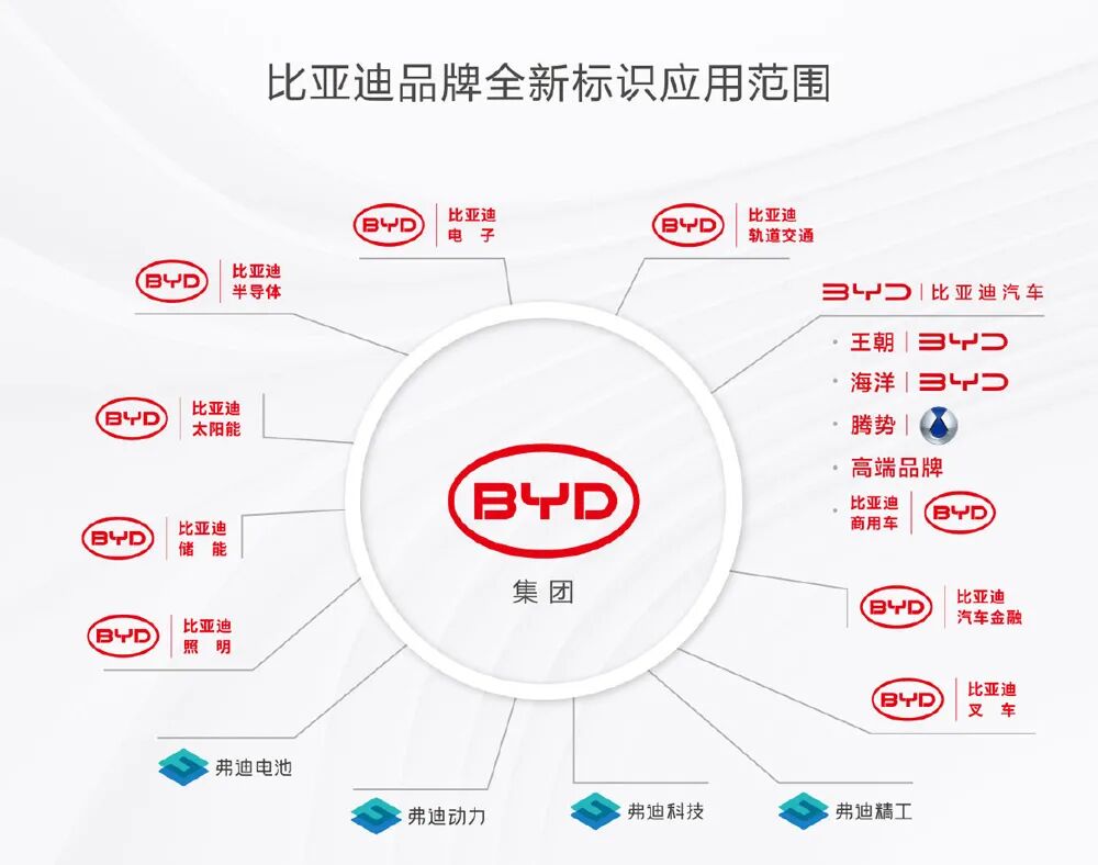 据悉,比亚迪集团新标志将在旗下电子、新能源、轨道交通以及汽车产业中使用。