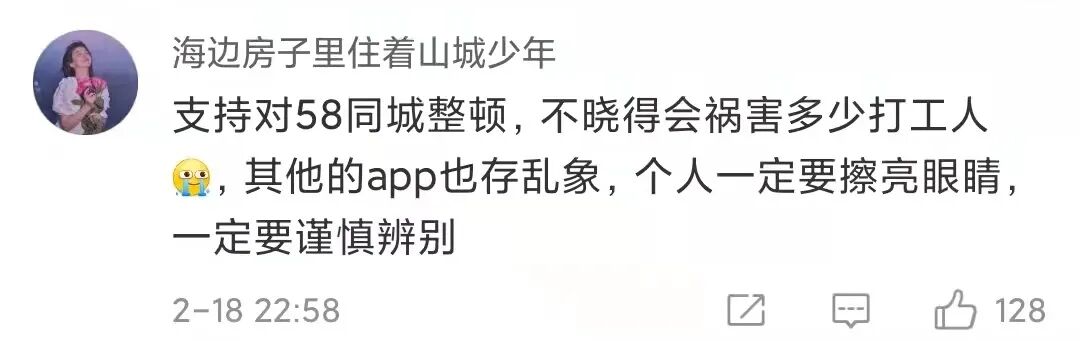 关于这个颠覆认知的事件,网友们的关注点也是出奇的一致,纷纷将矛头指向了58同城,总结起来主要有3点: