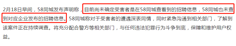 但有意思的是,事件爆出来两天了,58一直在“装死”,还是记者联系了58官方才通过媒体口头回应: