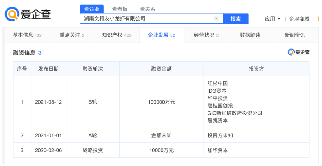 尤其是过去的一两年以来,文和友更是资本市场的绝对宠儿,通过多方融资积累了雄厚的资本。根据爱企查信息显示,就在去年8月份文和友完成了10亿元融资,由红杉中国、IDG资本领投,一跃成为新消费市场的“当红炸子鸡”。