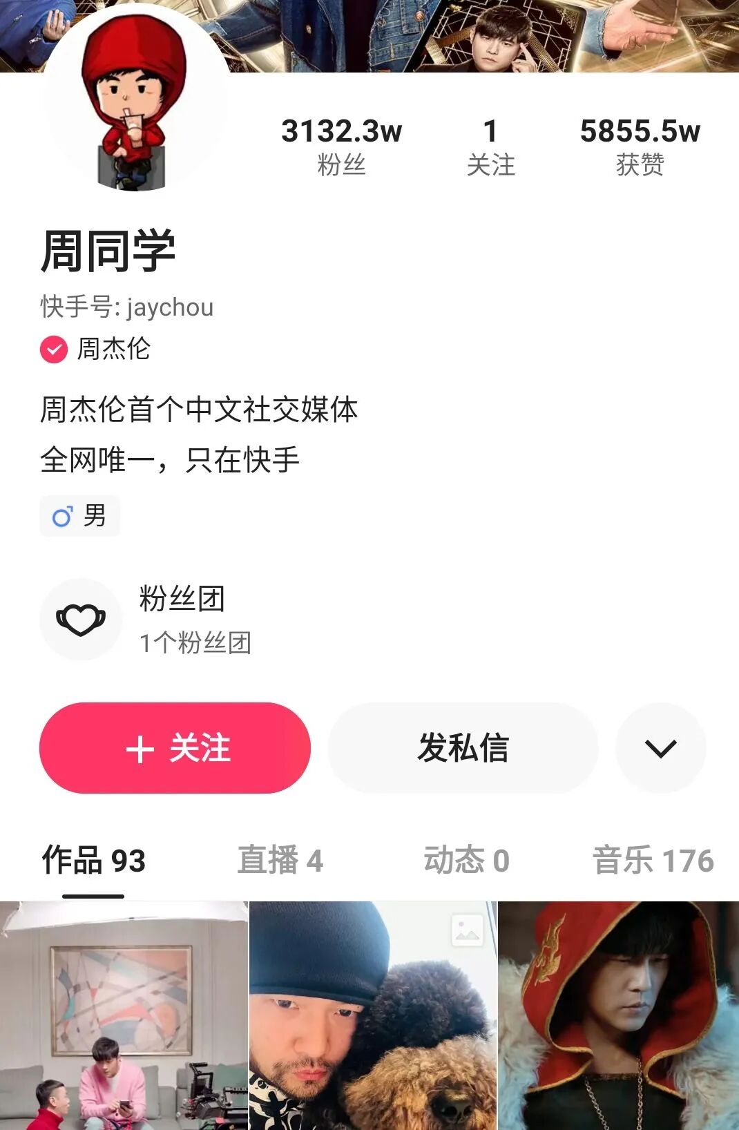 入驻快手一年半,周杰伦只发了93个作品 奇偶派截图