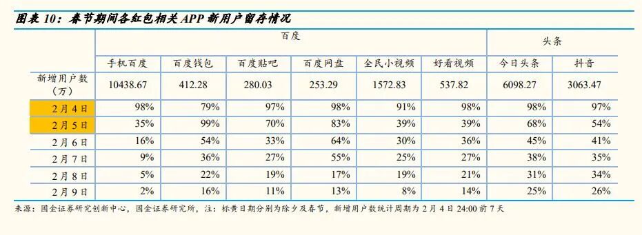 百度系APP 2019年春晚红包后留存率 图/国金创新中心