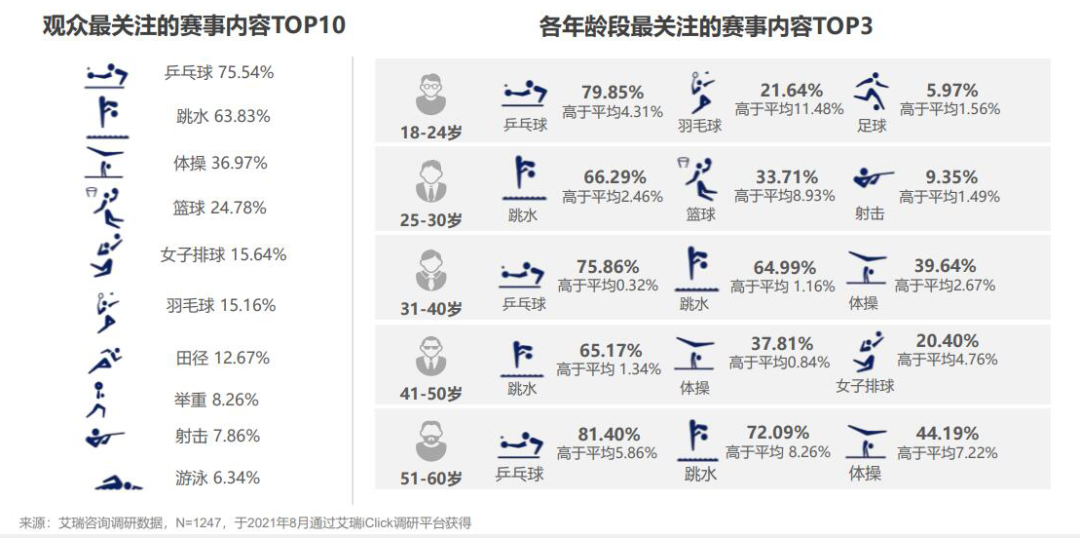 东京奥运观众最关注的赛事内容 图/艾瑞咨询