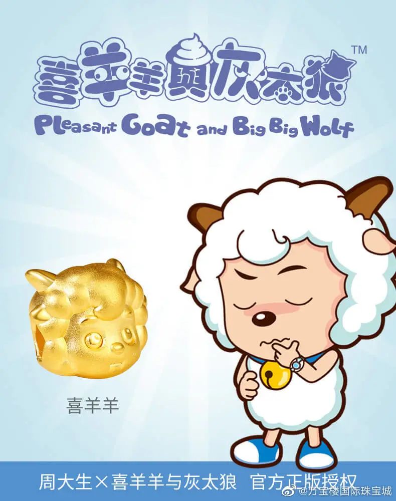 有意思的是,被喜羊羊告完赔钱之后,周大生转头又和喜羊羊灰太狼来了几波官方正版授权合作。