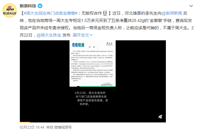 2月22日,周大生官方终于坐不住了,发布了一则声明: