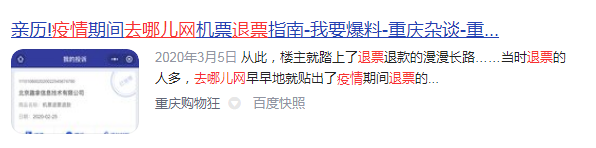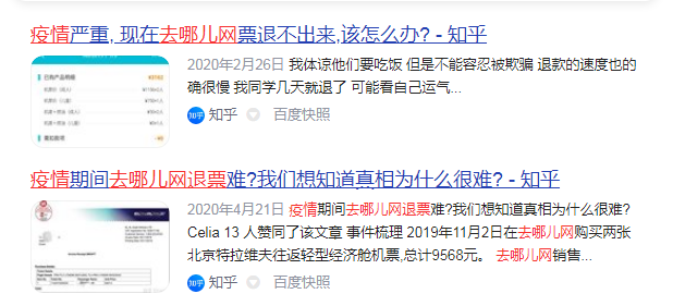 早两年疫情爆发,去哪儿网退票难的控诉铺天盖地,品牌形象一跌千丈。