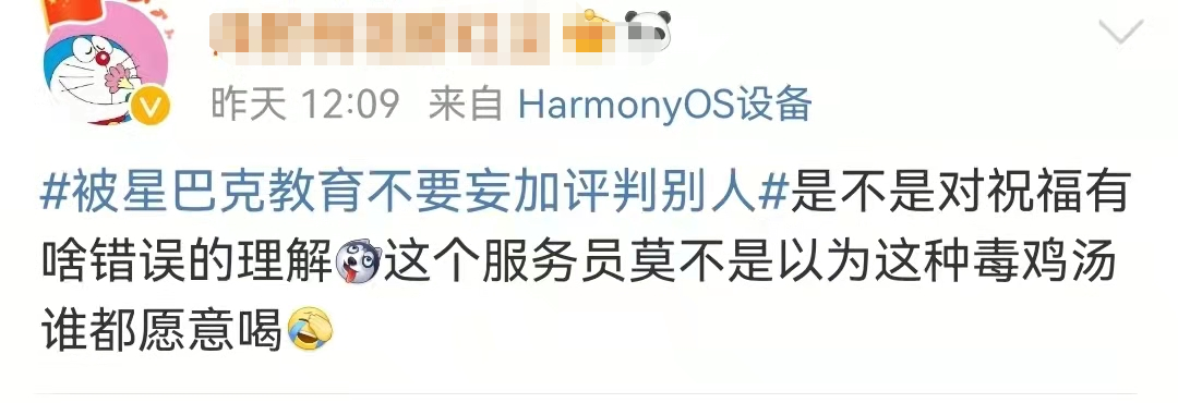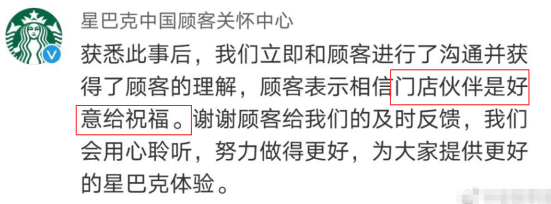 但这次翻车的损话,就很没文化,就差直接来一句“差评就要你好看”,显然跟星巴克标榜的文化相违背。