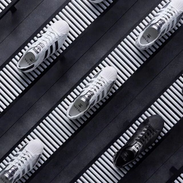 2019年,PRADA 与 adidas 也推出了首个联名系列——Prada for adidas 系列。其中包括1969年首次推出的标志性Superstar运动鞋、Prada专为阿迪达斯打造的保龄球包,全球限量700组。