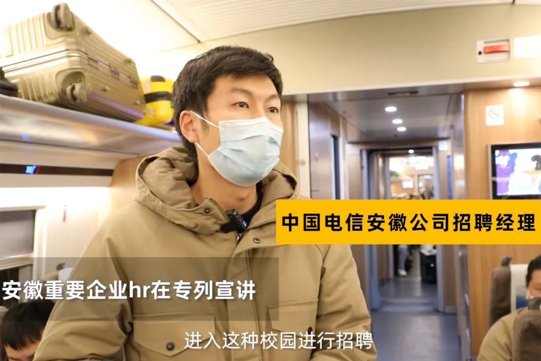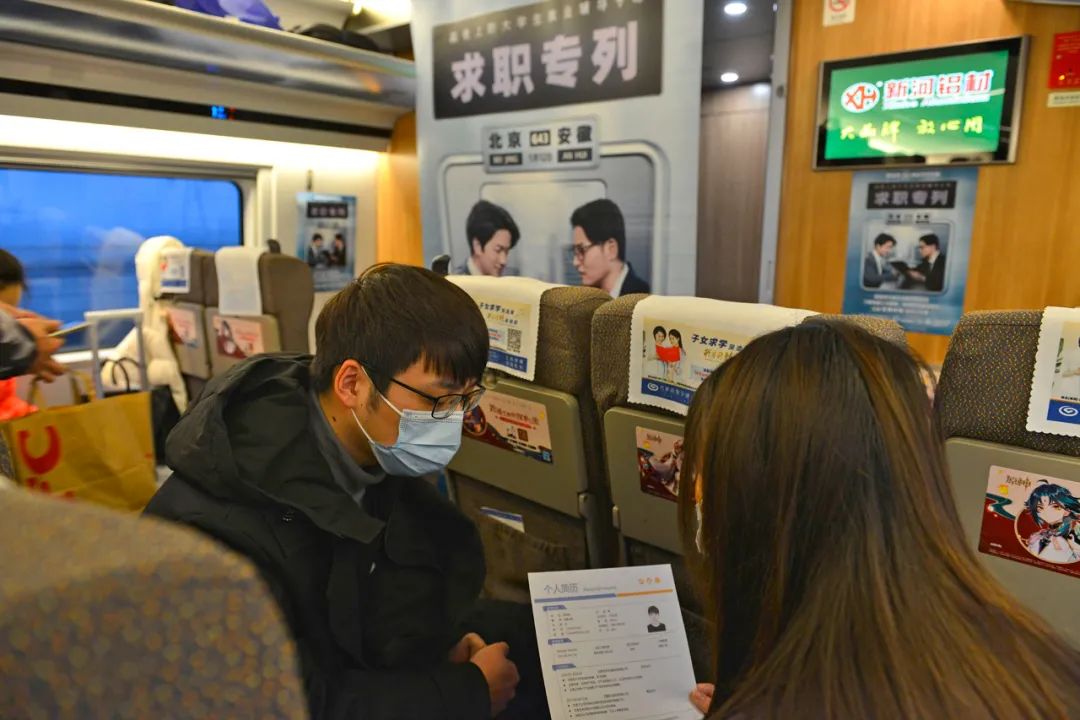政企联手,包下北京开往安徽的G43次高铁,打造一场「高铁上的招聘会」。返乡大学生在网上注册,就有机会获得求职专列的座席,还能获得车票全额补贴。