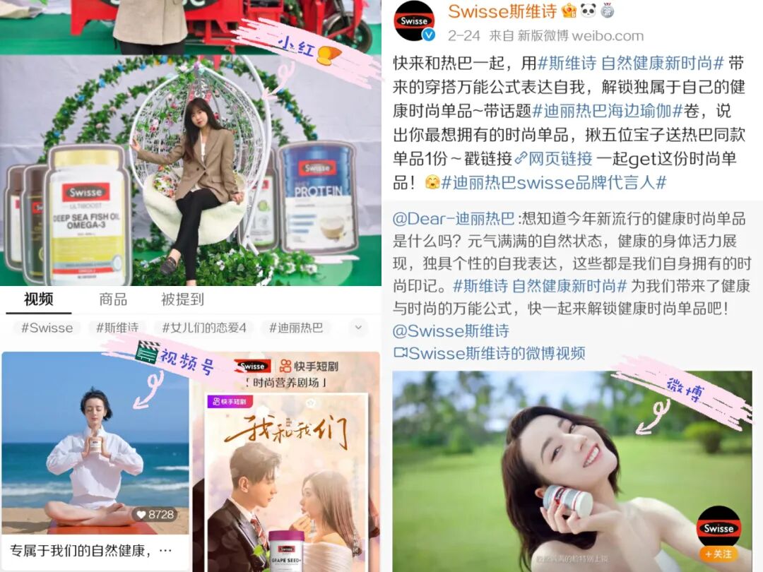 纵观整个活动,核心的宣发重点无疑是品牌新发布的TVC,由代言人国民女神迪丽热巴领衔,影片通过各个年龄层朝气活力且富有品位的人物气质,生动传递现代“女神”年轻时尚、自然健康的品牌形象。除此以外,TVC也联合了众多知名KOL,通过快手短剧、微信及微博、抖音、小红书等二次素材传播的形式,进一步触达爱美爱时尚,关注健康人群,让“自然健康=时尚单品”的理念更深入人心。因此,这次Swisse的营销中TVC视频播放量2.1亿,全网总曝光量高达7.5亿,进一步将“自然健康=时尚单品”的理念社会议题化,凭借着该短片的成功传播,Swisse斯维诗产品已成为各大社交平台中最in、最令人向往的时尚单品之一。