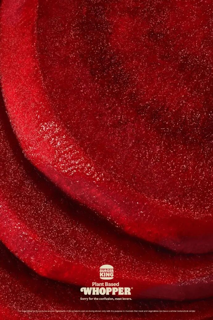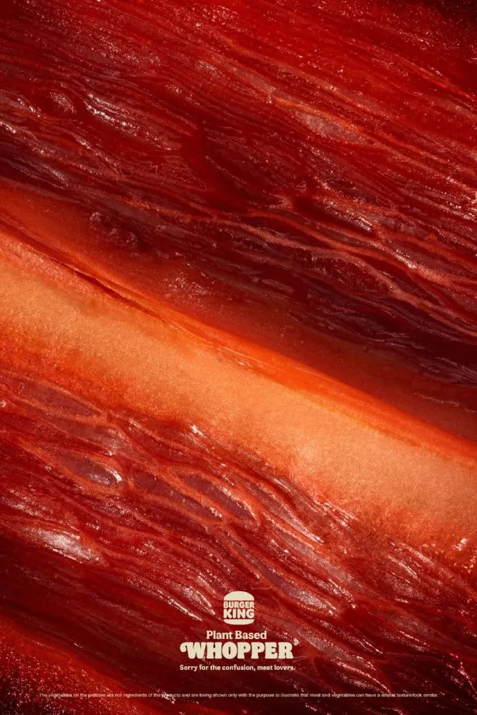 杨阳盲猜汉堡王可能是想利用微距的拍摄手法,模糊真肉和蔬菜之间的区别,让“植物”看起来,就长得跟“真肉”一样。