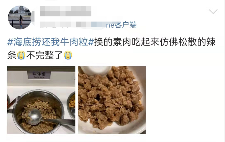 就看去年3月,海底捞把火锅小料里的免费牛肉粒,悄咪咪换成了“味伴侣”豆制品,外形啥的跟牛肉粒倒是很像,但口感就差远了。