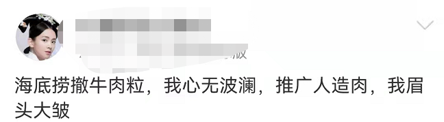 先不说网友们有多排斥“人造肉”、“植物肉”的概念。就是说红色、黄色可以激发消费者的食欲,但这个阴阳怪气的暗红色,给人一种血流成河的诡异,内容引起极度不适。