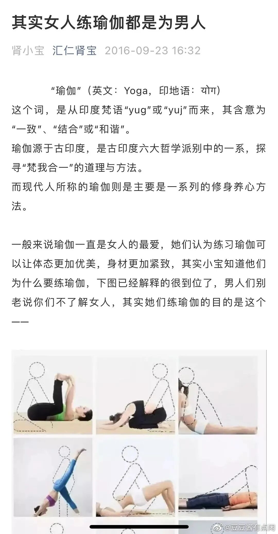 同样在2016年,汇仁肾宝还在官微发表了一篇名为《其实女人练瑜伽都是为了男人》的宣传文章。