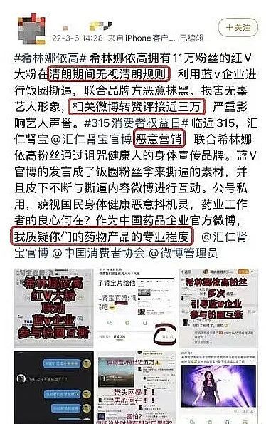2、315期间联合艺人粉丝引导粉丝撕逼,公号私用恶意营销。