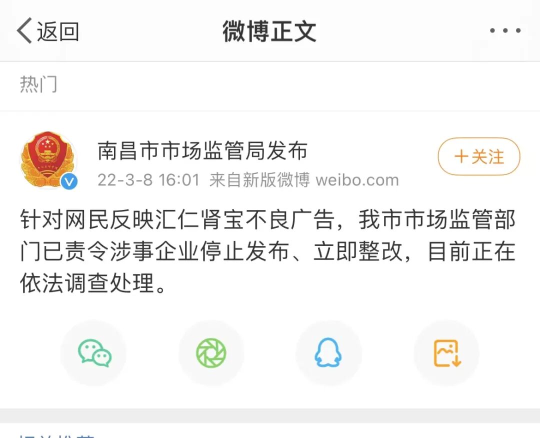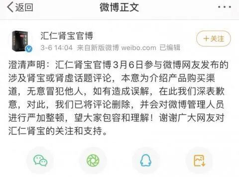 被扒了个底朝天的汇仁肾宝可能是意识到了事情的严重性,赶紧去删光了微博。