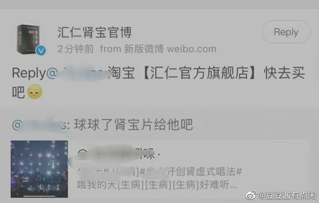 偶像A的粉丝为了拉踩,讽刺偶像B的声音听着像肾虚,不仅疯狂@汇仁肾宝官博让偶像B坚持吃、按量吃。
